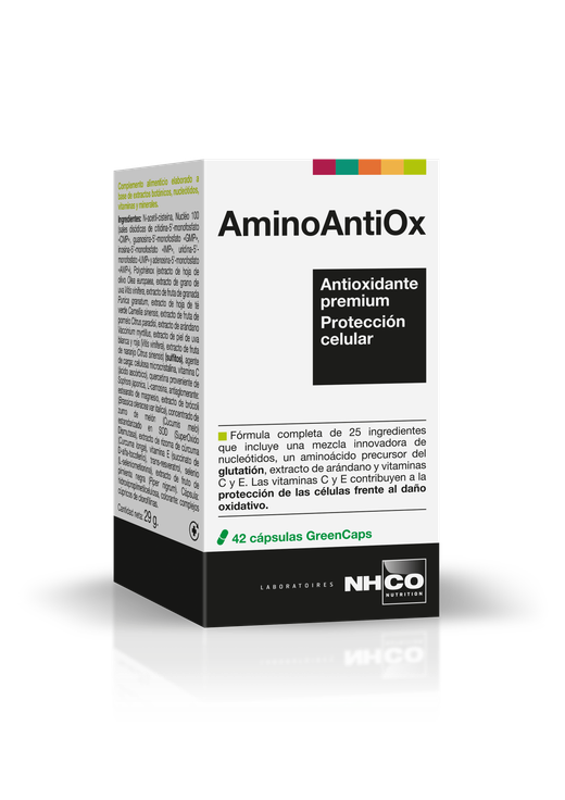 Plus d'informationsEn el organismo, existe un equilibrio natural entre el estres oxidativo y los mecanismos de defensa antioxidantes. La edad, la ctividad deportiva, los estilos de vida (sol, polución, cigarrillos) así como la alimentación actual, tienden a desequilibrar este estado, alterando el funcionamineto de nuestras células. La fórmula de AminoAntiOx combina 25 ingredientes, varios de los cuales tienen un reconocido poder antioxidante.Nucléo 100 es una mezcla específica de nucleótidos elaborados. Los nucleótidos son los constituyentes del ADN y participan en los procesos fundamentales del organismo.Gluta-SOD System aporta N-acetil-cisteína, un aminoácido precursor del glutatión y SuperOxido Dismutasa SOD, extraída del melón.Nautral Spectra es una mezcla de extractos como el de arándano y Polyphénox, patentado que contiene polifenoles equivalente a 2 porciones de fruta. AC3 Complex aporta vitamina C, selenio y vitamina E que contribuyen a la protección de las células frente al daño oxidativo.