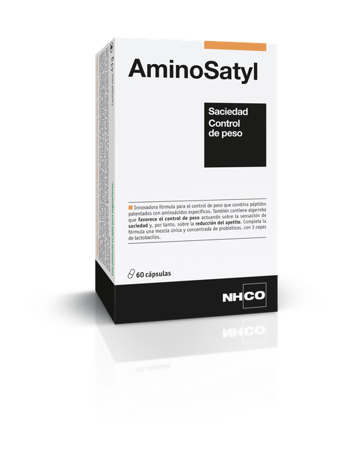 Plus d'informationsDurante un programa de control de peso, se recomienda practicar actividad física regular y adoptar una dieta variada y equilibrada, al tiempo que se reduce la ingesta calórica de las comidas. Dependiendo del metabolismo y los hábitos alimentarios, el control del apetito puede ser una parte importante para promover el control de peso. AminoSatyl ha sido desarrollado con el objetivo de ayudar al control del peso corporal. Su fórmula combina dos complejos:- Satyl contiene un ingrediente activo innovador: PeptiSat-10AA, que consiste en péptidos patentados que han sido testados científicamente. También contiene aminoácidos específicos, así como algarroba que ayuda a aumentar la sensación de saciedad y a reducir el apetito, ayudando así al control de peso.- Adip-AC combina dos aminoácidos, L-arginina y L-carnitina, con tres cepas seleccionadas y estudiadas de lactobacilos. Estos lactobacilos, presentes de forma natural en la microbiota intestinal, se han concentrado para una dosificación óptima.AminoSatyl también contiene vitaminas B1, B3, B5 y B6, que contribuyen al metabolismo energético normal.
